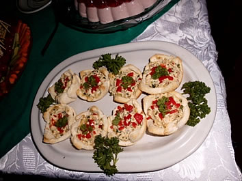 Canapés de pollo con café, té o jugo.